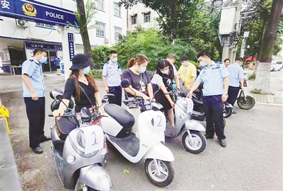 8月25日下午,在市公安局源汇分局大学路派出所门前,民警将追回的被盗电动车归还失主。赵予晓 摄