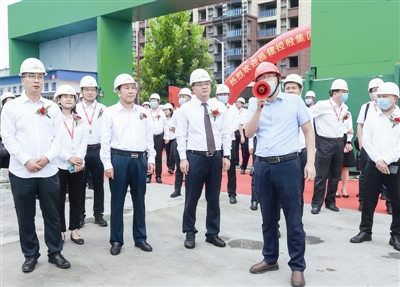 昌建控股集团领导、嘉宾、媒体代表在昌建公园学府样板工地参观。