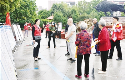 9月26日上午,郾城区委宣传部组织15家单位在黄河广场开展“文明实践之周末社科知识大集”活动。见习记者 王嘉明 摄
