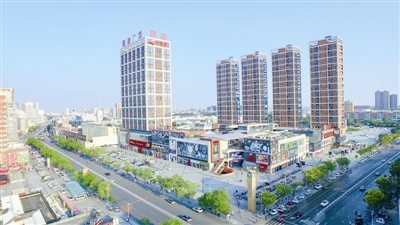商贸物流产业发达,现代服务业繁荣,三产总量和增幅始终居全市首位。图为全市最大的城市综合体——昌建广场。
