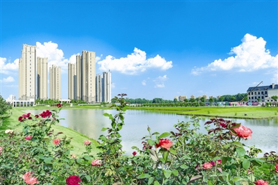 百城提质和城市“双修”工程深入推进。图为长申玉滨河风情街区一角。