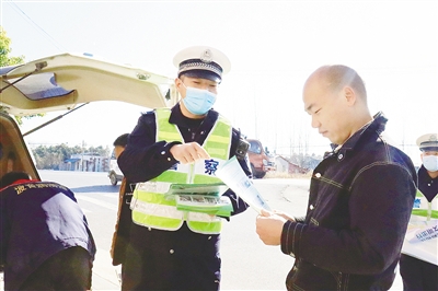12月2日,市公安局交通管理支队源汇区大队到大刘镇开展全国交通安全日宣传活动。见习记者 刘净旖 摄