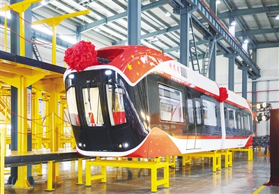国内首辆磁浮空轨列车“兴国号”。
