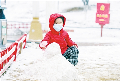 1月21日,小朋友在堆雪人。本报记者 杨 光 摄