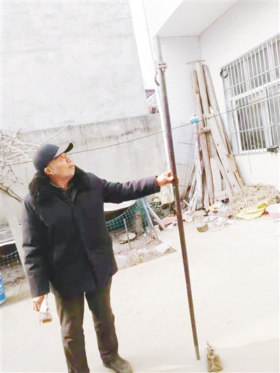 村民吕振修展示家中的巨型秤。