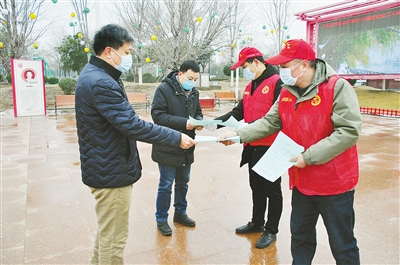 1月27日上午,市农业机械技术中心的志愿者来到沙澧河风景区,向游客发放文明旅游倡议书。