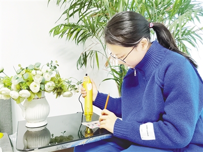 “假期里,学习不能落下。我合理安排各个学科的学习任务,每天按计划执行,同时坚持体育锻炼。当然,有时间的话我还是喜欢做手工。”何佳一说,学习累了,她就拿出自己在网上购买的各种材料做一些小玩意儿,比如手机壳、背包、小饰品等。近段时间,她对热缩片很感兴趣,把热缩片做成钥匙链、吊坠等送给亲朋好友。其中,她做得最多的就是卡通小老虎挂件。“农历虎年马上就要到了。我做的一些可爱的老虎挂件,大家都很喜欢。”何佳一说。