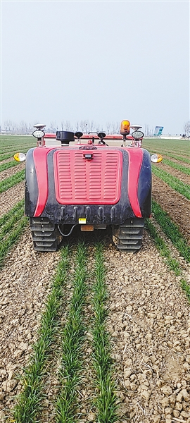 2月10日,在临颍县瓦店镇一块农田里,一辆无人驾驶拖拉机正在按照规划好的路线来回耕地。这是河南益民控股有限责任公司(以下简称益民控股)麦椒套种标准化种植示范基地在利用智慧农业装备进行春耕备播。