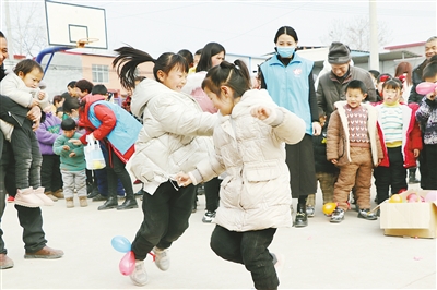 2月10日上午,空冢郭镇马店村党群服务中心广场上热闹异常,别有特色的儿童主题元宵庙会正在举行。活动现场一角,一个跳蚤市场非常热闹,孩子们将不用的玩具、灯笼等拿出来售卖。当天下午,源汇区社工站的社工还来到大刘镇皇玉村,和村里的留守儿童共迎元宵佳节。