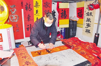安富顺在为邻里写春联。