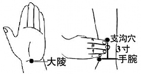 另外,还可按摩消食穴位。取大陵穴(位于腕掌横纹中点处)、支沟穴(位于前臂背侧,在手腕关节上4横指处),用拇指或食指指腹置于穴位处按揉。每个穴位按揉150~200次,每日一次即可。