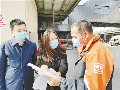 为保障快递从业人员的合法权益,我市新出台工伤保险优惠政策。2月10日,市人社局工作人员到申通快递漯河分拨中心,向企业负责人宣传该项政策。本报记者 张俊霞 摄