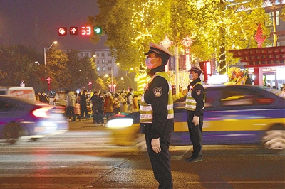 2月15日,市公安局交通管理支队源汇大队加大主要路口、路段、景点的巡逻管控力度,全力保障元宵节期间道路交通安全、有序、畅通。王焕丽 摄