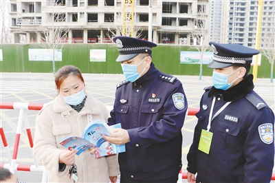 2月23日下午,市公安局城乡一体化示范区分局治安管理大队民警到西湖学校附近开展反电信网络诈骗宣传。马艳红 摄