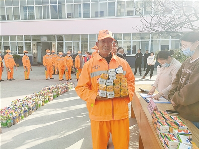 3月4日,召陵区环卫服务中心开展“弘扬雷锋精神 捡烟头换礼品”文明实践活动。图为大家正在排队换礼品。本报记者 胡鸿丽 摄