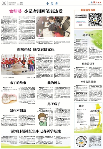 “妈妈,我永远爱您”“妈妈,您辛苦了。祝您节日快乐”……3月5日,漯河日报社小记者团的小记者们和自己的妈妈一同来到河南森林假日食品科技发展有限公司,参加主题为“女神节,我爱妈妈”的绘画大赛。
