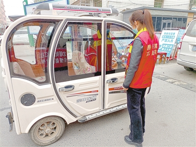 3月16日,龙塔街道淞江社区疫情防控服务宣传点对外来车辆司乘人员进行测温、登记。本报记者 姚晓晓 摄