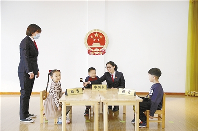 近日,郾城区人民法院干警走进小哈佛幼儿园,为孩子们上法治课,并开展模拟小法庭活动。张林军 摄
