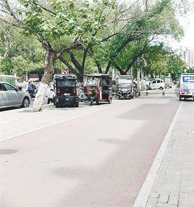 交通北路与黄河中路交叉口向北约60米路东,车辆乱停乱放。