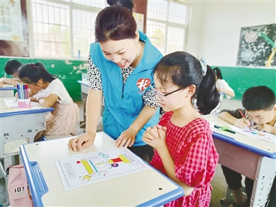 6月17日,郾城区龙城镇社工在李湾村“儿童之家”开展“童心彩绘 父爱如山”活动。 本报记者 孙 震 摄