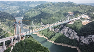 当日上午,随着最后一块钢桁梁吊装到位,由贵州路桥集团承建的金烽乌江大桥顺利合龙。金烽乌江大桥是贵阳经金沙至古蔺(贵金古)高速公路项目的重要控制性工程,全长1473.5米,大桥的合龙为贵金古高速公路明年通车打下了坚实基础。