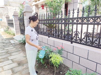 李秀荣家位于经济技术开发区湘江路管理办公室徐庄村。她家大门前的道路整洁,大门外种有月季、玫瑰等花卉,黄色、红色的花竞相开放,花香怡人。在小院里,石榴树生机勃勃,给炎炎夏季带来丝丝凉意。“这些树和花大部分是我儿子买的,我负责照顾。”李秀荣说。