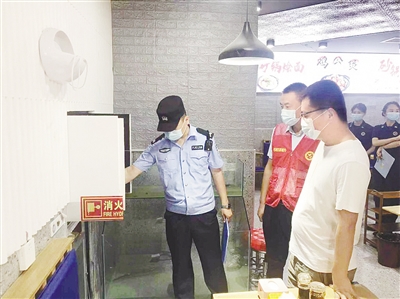7月11日,西城区新城管理办公室联合该区多个部门对辖区餐饮场所的燃气、消防安全等进行检查。本报记者 张玲玲 摄