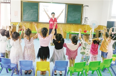 7月8日,市直幼儿园组织优秀教师到孟庙镇潘东村开展送教下乡活动。本报记者 齐国霞 摄