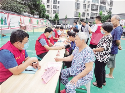 7月22日,源汇区马路街街道友爱街社区联合市第二人民医院在人民路金汇花园小区开展以“我为群众办实事 健康服务进万家”为主题的义诊活动。本报记者 王嘉明 摄