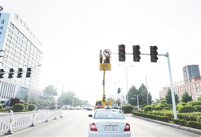 本报讯(记者 范子恒)7月26日上午,记者在钟楼广场看到,工作人员正在重划地面交通标线、调整信号灯,忙得不亦乐乎。