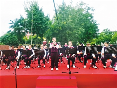 8月31日,郾城区实验小学组织管乐团演奏音乐,迎接新生入校。田三华 摄