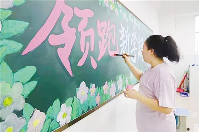 9月1日,源汇区实验学校组织教师营造特色文化氛围,迎接新学期。李甜甜 摄
