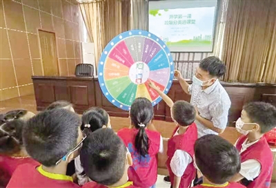 “同学们,你们知道什么是有害垃圾、什么是可回收垃圾吗?用完的电池是哪种类型的垃圾?”课堂上,城发新环卫(漯河)有限公司讲解员王淦向小记者们提出问题。王淦接着讲解道:“废电池比较坚硬、腐蚀性强,处置时会损伤设备,被列入有害垃圾。”