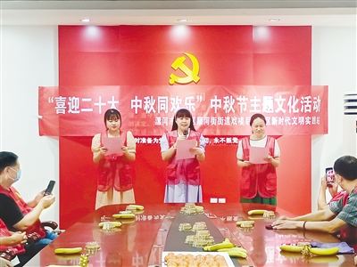 9月7日,源汇区顺河街街道戏楼后街社区组织居民在新时代文明实践站开展“喜迎二十大 中秋同欢乐”主题文化活动。本报记者 孙 震 摄