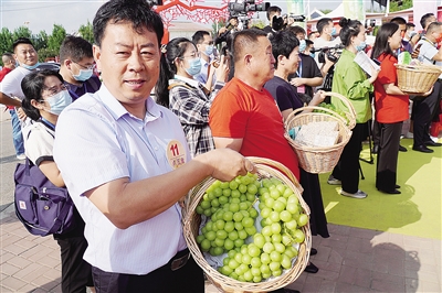 9月14日,在山东省乐陵市举行的全国农民技能大赛(种植能手)现场,选手在展示自己家乡的农产品。