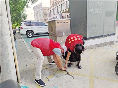 9月14日,郾城区沙北街道河滨社区志愿者在辖区排查窨井盖安全隐患。