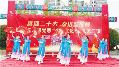 ↑9月29日,源汇区文化旅游局主办、马路街街道办事处承办的迎国庆文艺演出在双汇广场举行。