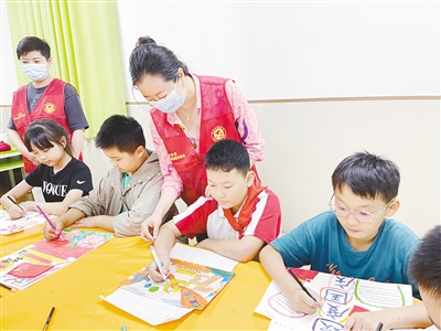 →9月28日下午,源汇区老街街道老街社区开展“童画献国庆”绘画活动。