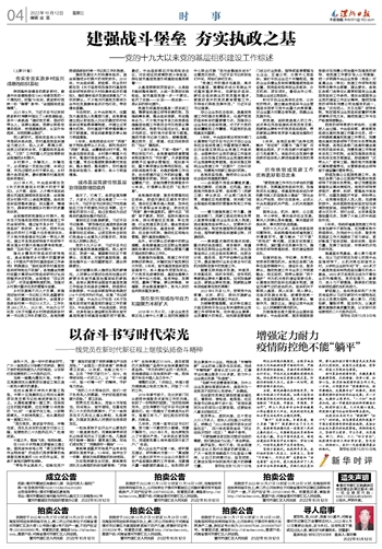 金秋十月,是一年中的黄金时节。广大一线党员以只争朝夕的拼劲、锲而不舍的韧劲和敢为人先的闯劲,以实际行动迎接党的二十大胜利召开。