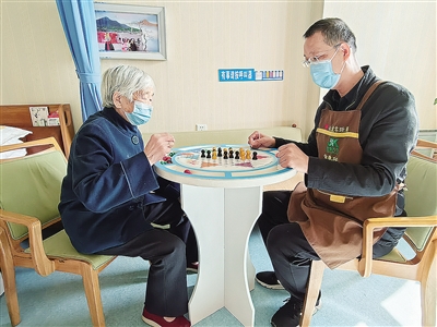 按照护理人员的工作流程,记者拿起拖把,把室内的地板认真地拖洗一遍,又仔细地擦拭桌椅、床头等处。随后,和老人一起为花草浇水。看到记者忙个不停,徐爱荣老人招呼记者休息一会儿,陪她下跳棋。