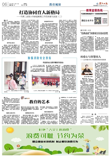 近年来,市第二实验小学重视协同育人工作。在校内,积极发挥学校主导作用,坚持“五育并举”。校外,充分利用家长学校、家长委员会、家长会、学校开放日和家访等密切家校联系,切实加强对家庭教育的指导,并及时听取家长对学校工作的意见和建议,形成育人共同体;学校统筹利用社会各类资源,特别是红色教育资源、劳动教育资源,让社会成为学生成长实践的大课堂,为强化实践育人创造有利条件。形成了学校、家庭、社会协调一致的育人合力。