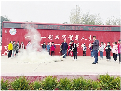 11月9日,郾城区新店镇第一中心小学举行了消防安全演练。