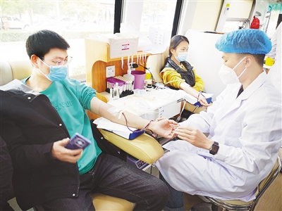 11月8日,市中心血站组织中国太保寿险漯河中心支公司开展无偿献血活动。本报记者 刘彩霞 摄