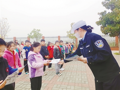 11月11日,市公安局交通管理支队西城区大队交警来到西城区阴阳赵镇洪山庙小学,向孩子们宣传交通安全知识。本报记者 张丽霞 摄