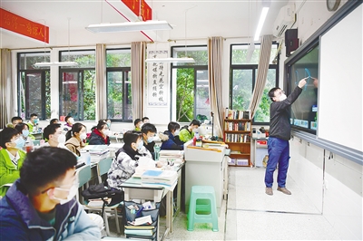 12月12日,在重庆市铁路中学校高三年级的教室内,学生们在课堂上认真听课。12月12日,重庆中心城区高三、初三年级开始有序恢复线下教学。新华社发