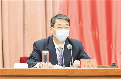 上图:12月28日,市委书记刘尚进作工作报告并全面部署2023年工作。本报记者 焦海洋 摄
