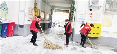 1月15日上午,源汇区老街街道滨西社区组织辖区群众清除积雪。