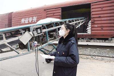 除了做好对货位、取送车、配空车等环节的衔接外,货运员还需要对集装箱等重点物资运输进行现场指导和盯控,查看每个货位装走的货有没有破损。“现场一站就是三四个小时,一天走两万步是常事。”张诗雨说。