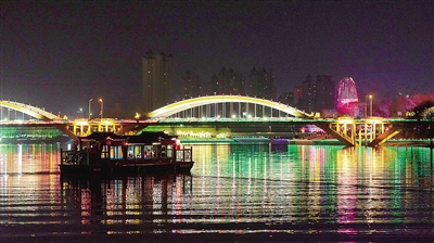 1月15日晚,市民乘坐游船观赏沙澧河两岸夜景。本报记者 孙 震 摄