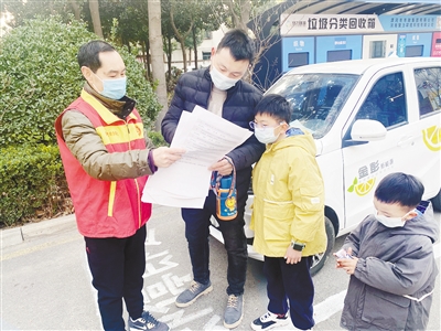 1月31日,源汇区老街街道滨西社区志愿者在辖区开展创建全国文明城市问卷调查。本报记者 孙 震 摄